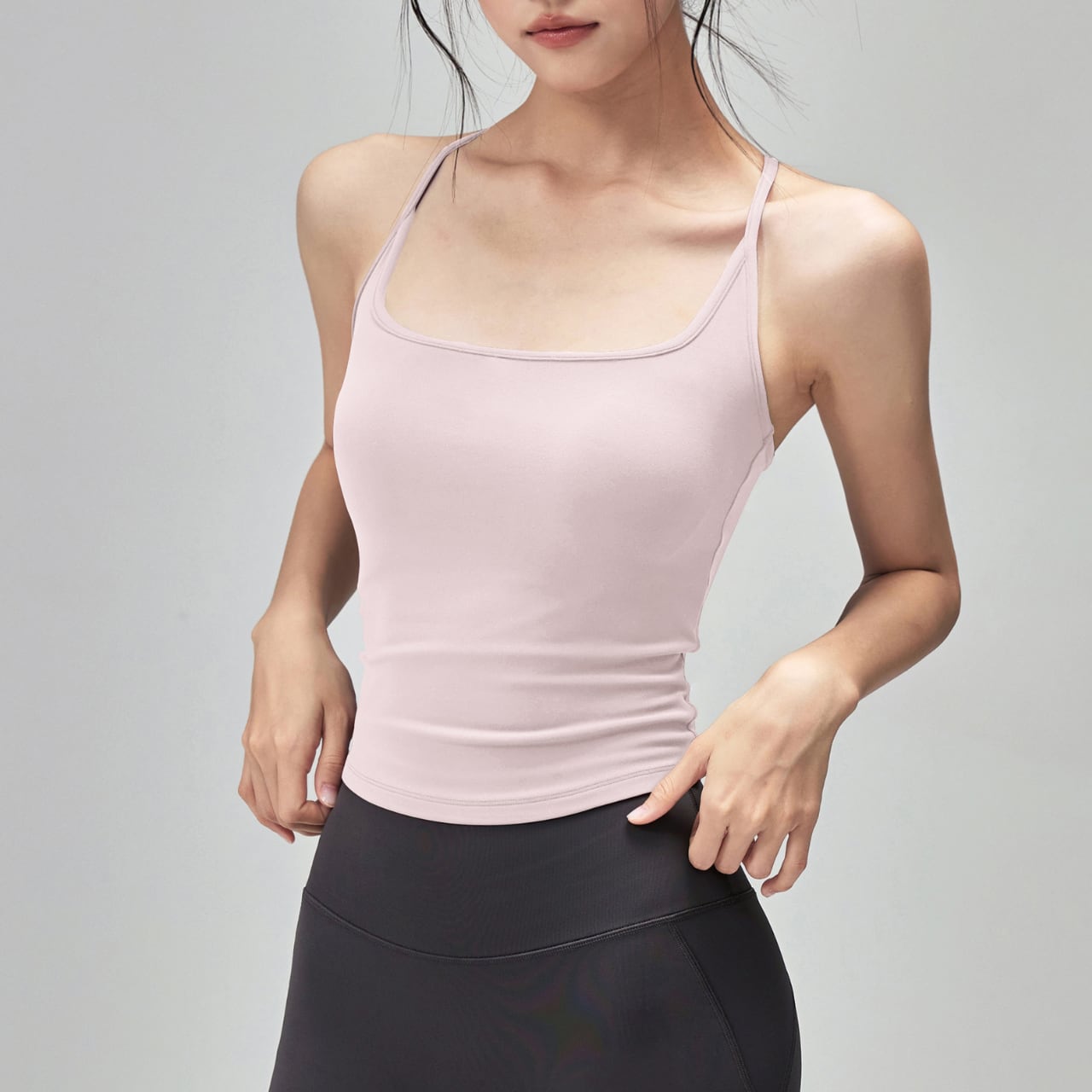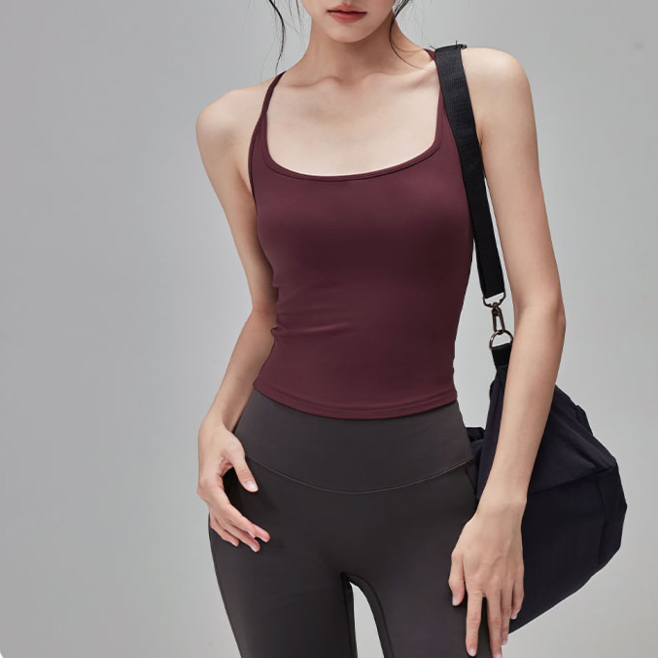 Yバックが背中のラインを綺麗に見せて