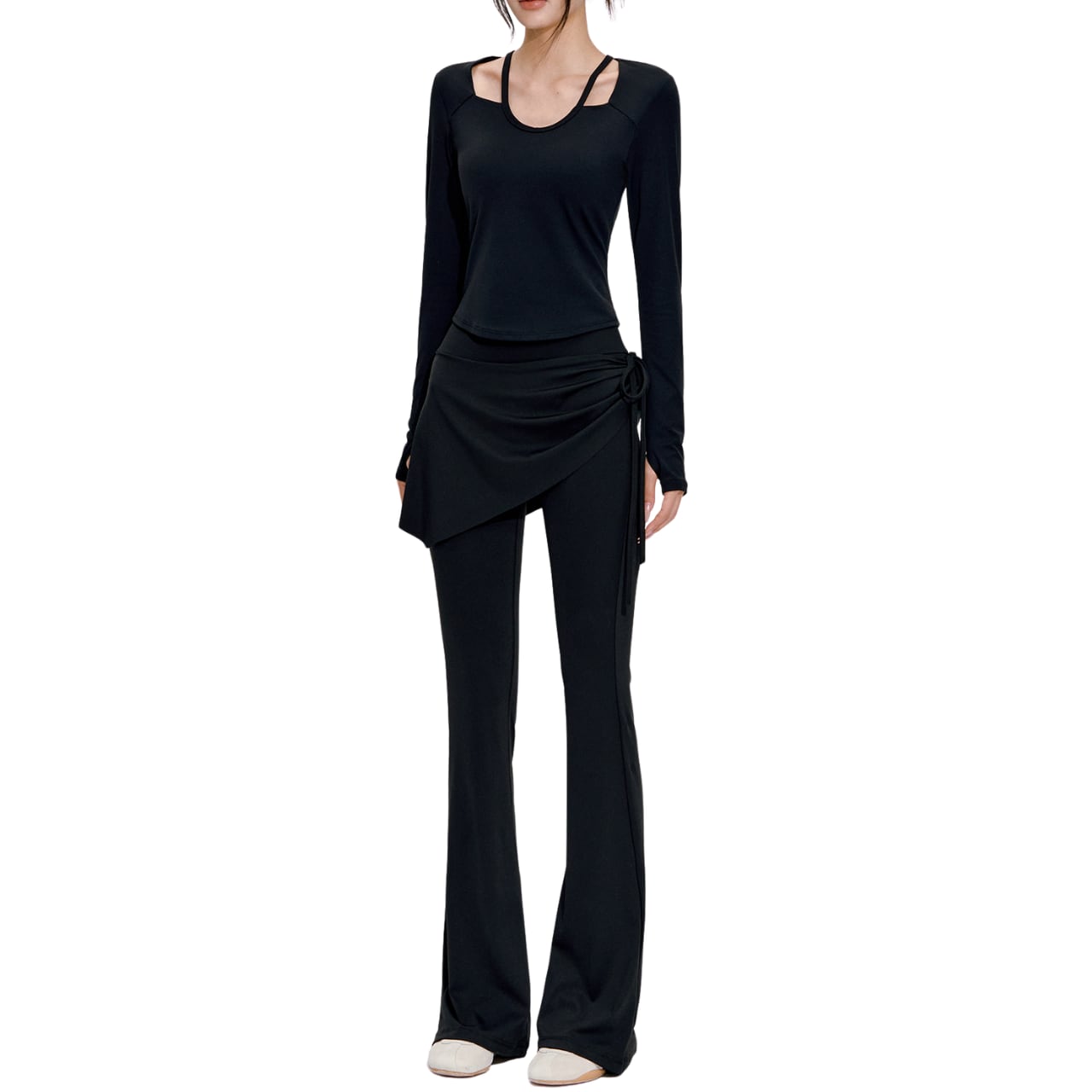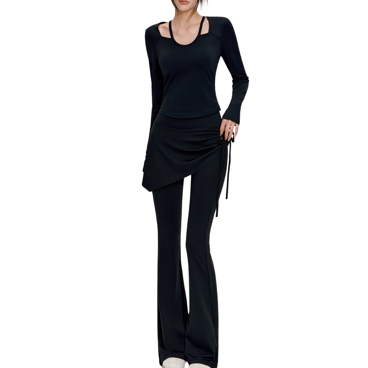 Square Neck Design Long Sleeve and Skirt Style Flare Pants Set BM0031