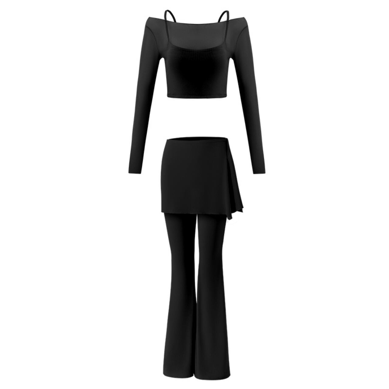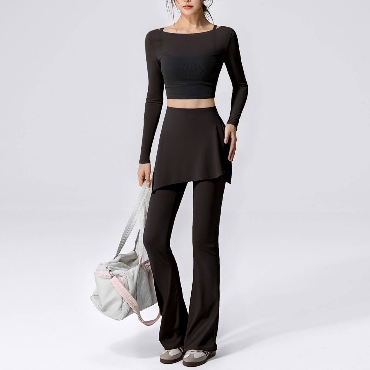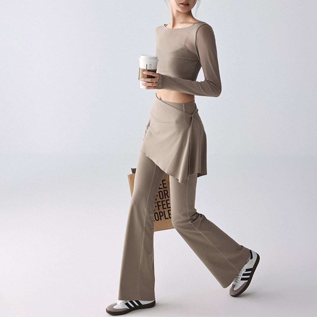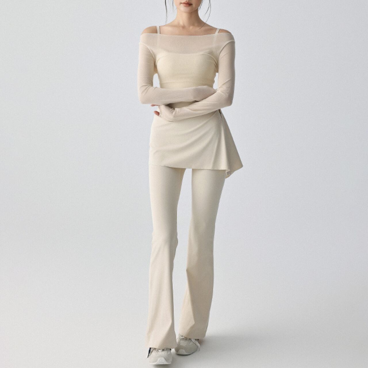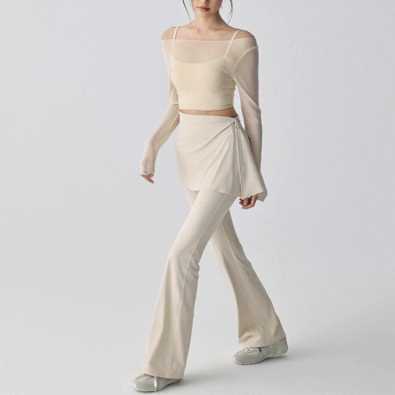 Sheer Cropped Long Sleeve and Flare Pants With Skirt Set Up BM0046