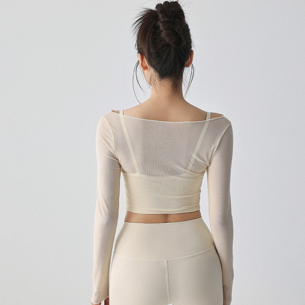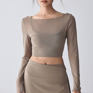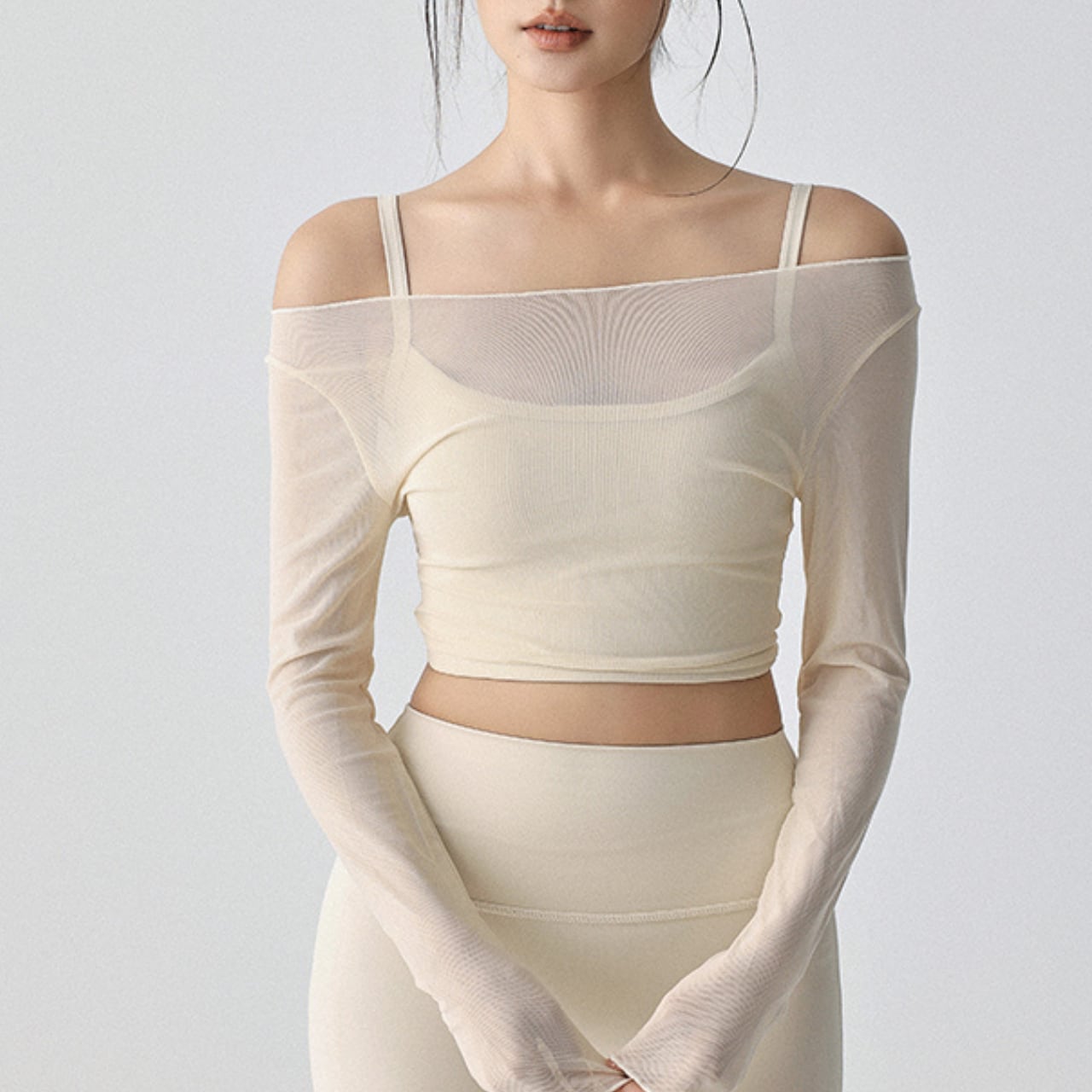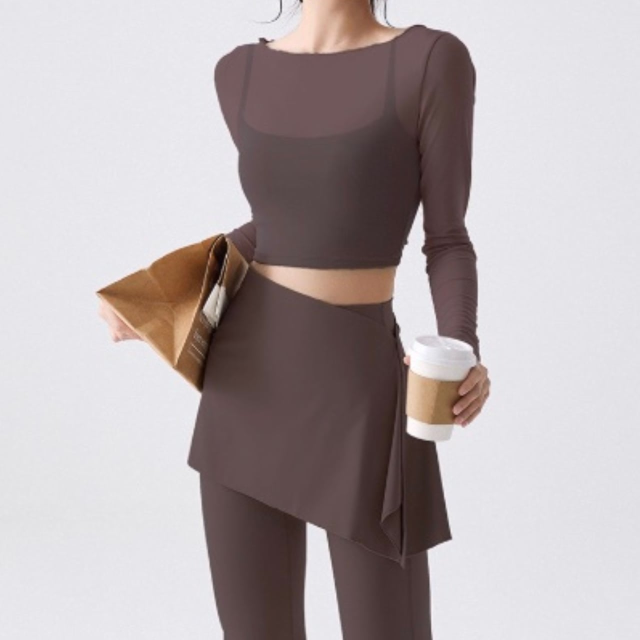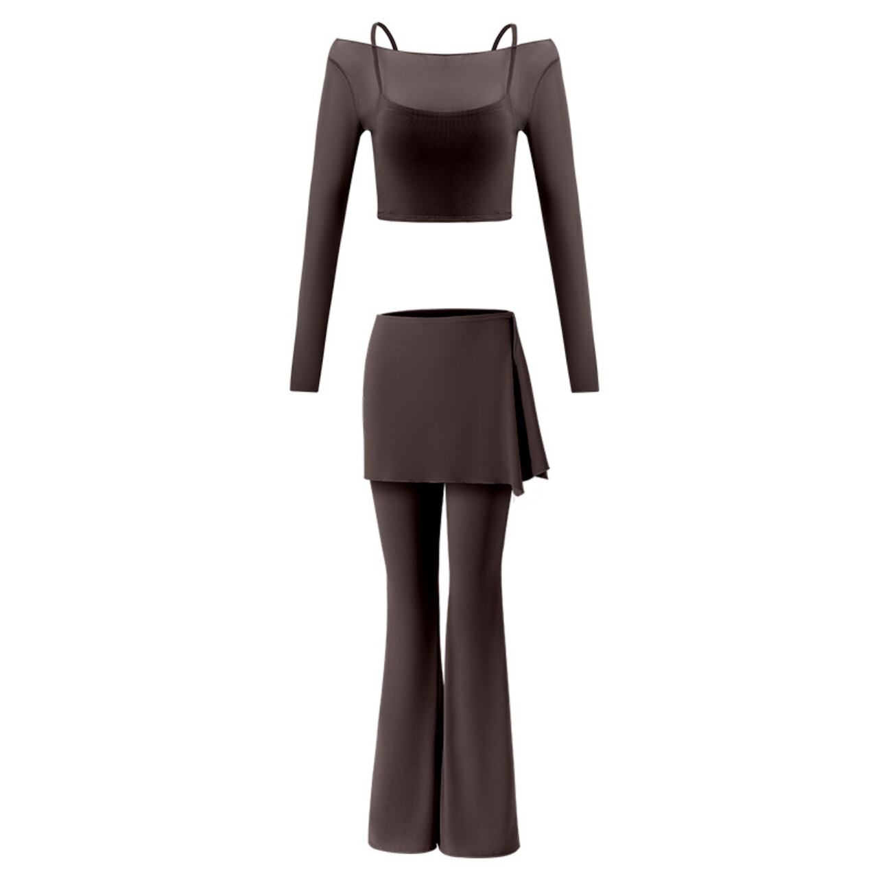 Sheer Cropped Long Sleeve and Flare Pants With Skirt Set Up BM0046