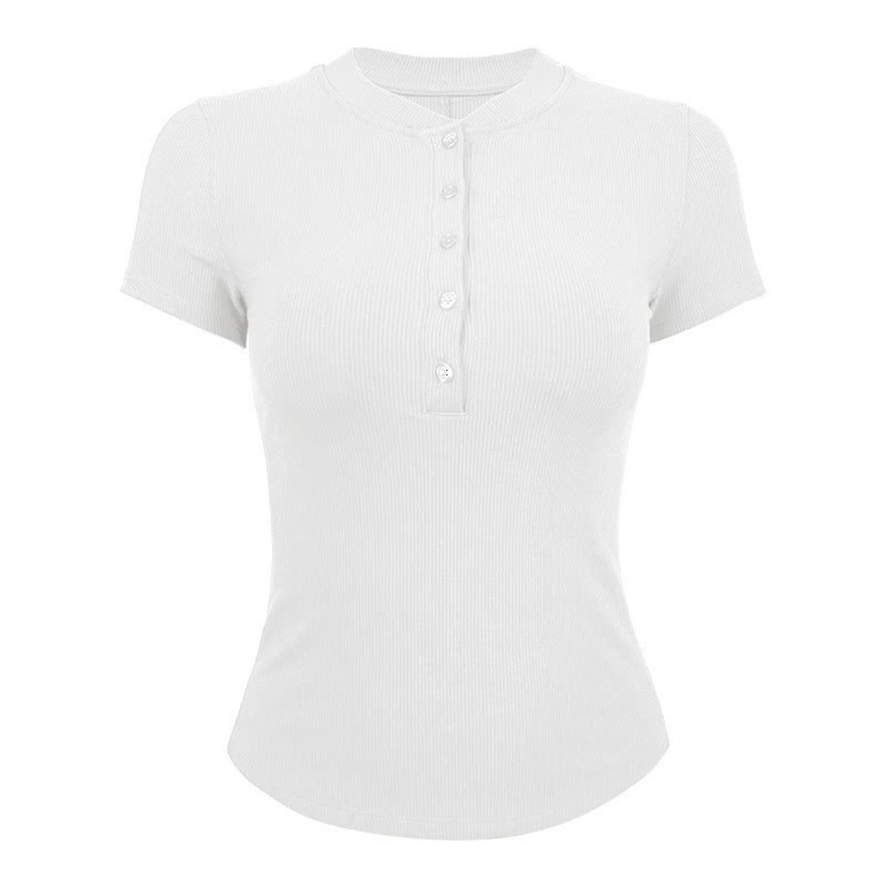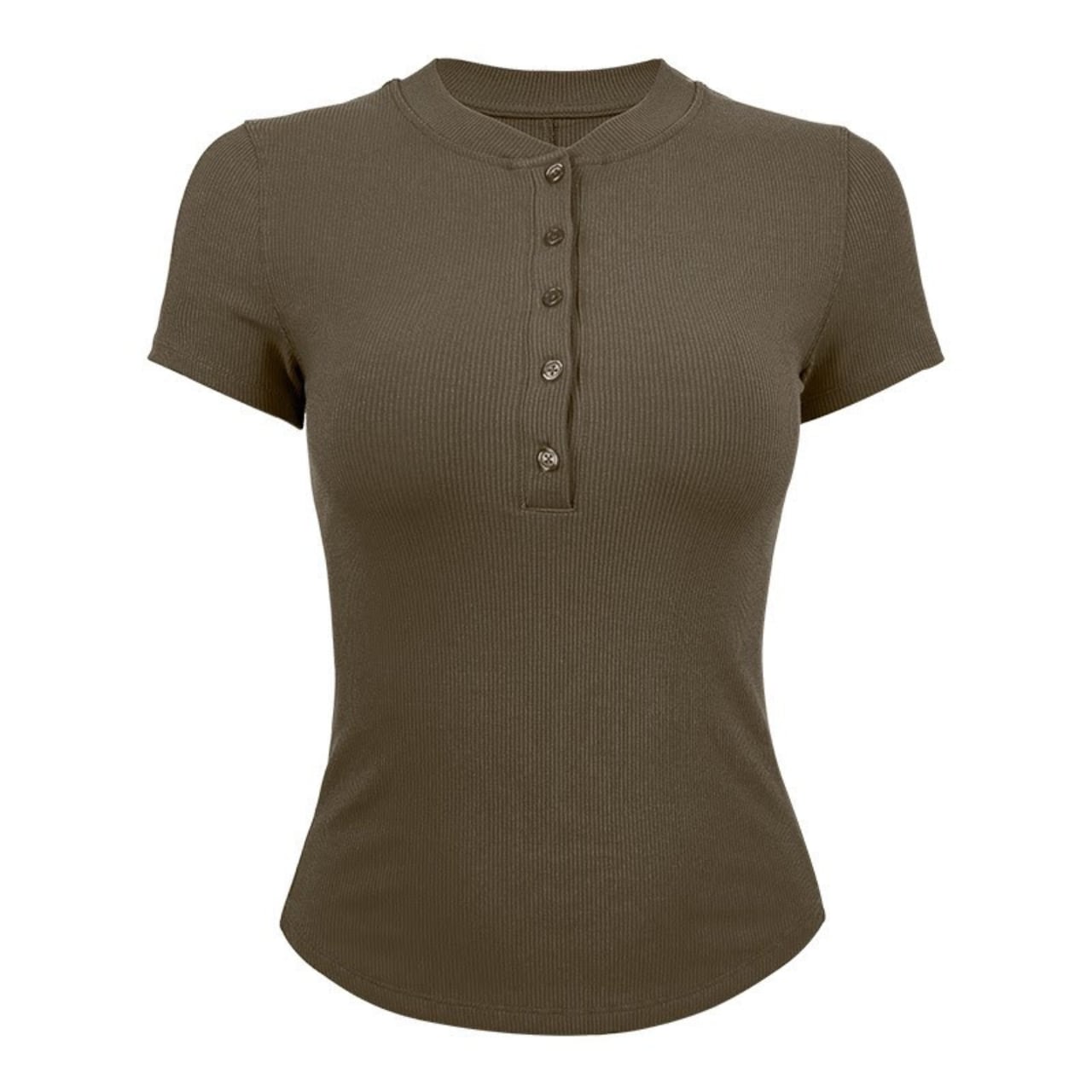 Button Front Short Sleeve Ribbed Cropped Top BM0085